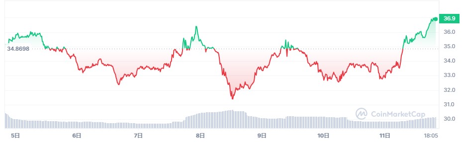 2025年11月13日時点のベーシックアテンショントークンの価格は、1BATあたり約30.64円程度となっております。